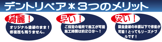 ようこそ!! 滋賀県のデントリペア専門店、『デントリペア 池本』のホームページへ。 デントリペアの技術であなたの愛車のヘコミを 綺麗に!早く!安く!修理いたします。 『デントリペア 池本』は、お客様の大切な愛車のヘコミを丁寧に時間をかけて作業いたします。